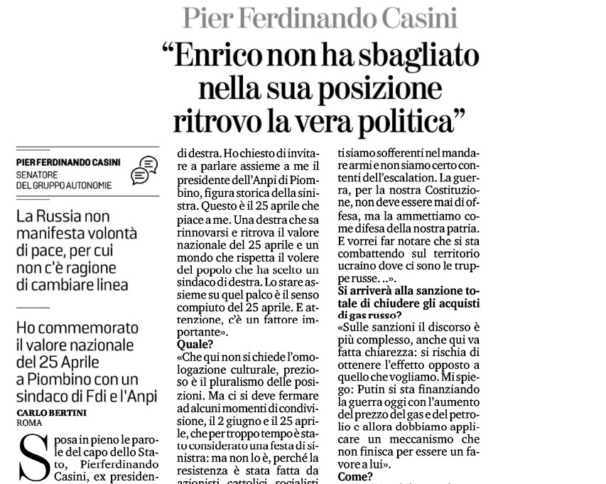 postato il 25 Maggio 2022L’intervista pubblicata su Il Messaggero a cura di Alberto Gentili