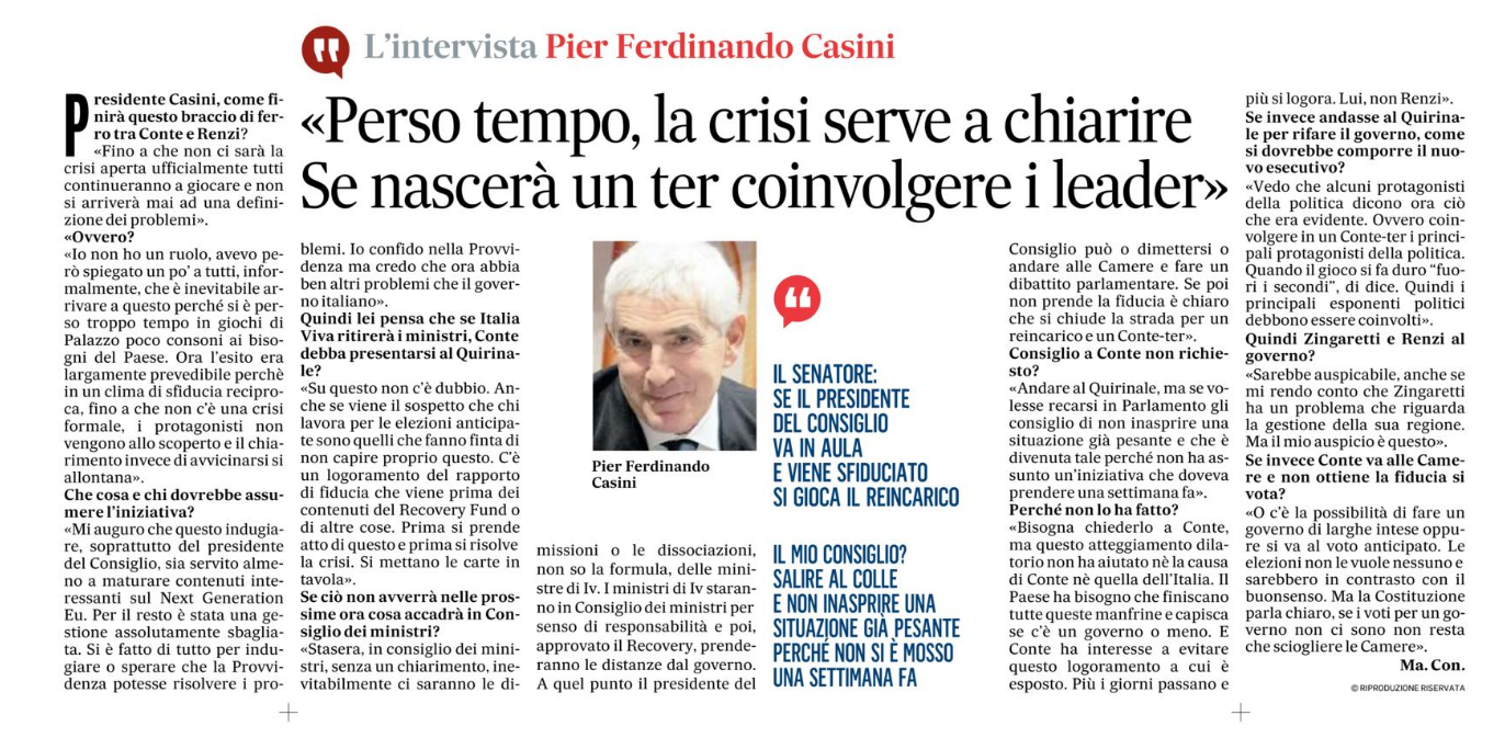 L’intervista di Paola Di Caro pubblicata sul Corriere della Sera