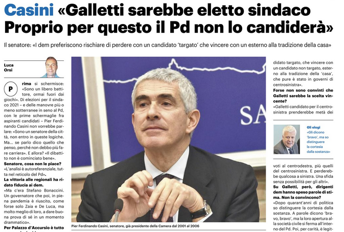 Prima si schermisce: «Sono un libero battitore, ormai fuori dai giochi». Di elezioni per il sindaco 2021 – e delle manovre più o meno sotterranee in seno al Pd, con le prime schermaglie fra aspiranti candidati – Pier Ferdinando Casini non vorrebbe parlare: «Sono un senatore della città, non entro in queste logiche. Ma… se parlo dico quello che penso, perché non debbo più fare carriera». E allora? «Il dibattito non è cominciato bene».