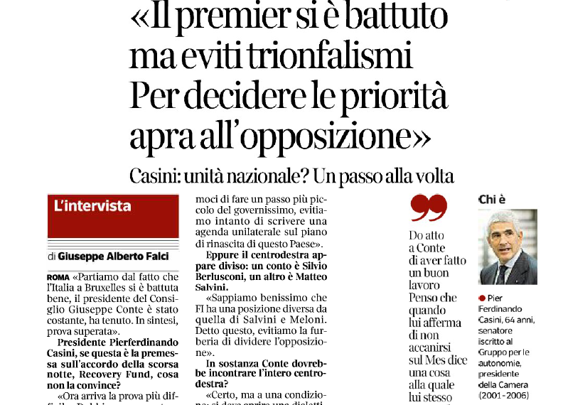 Presidente Pier Ferdinando Casini, se questa è la premessa sull’accordo della scorsa notte, Recovery Fund, cosa non la convince?