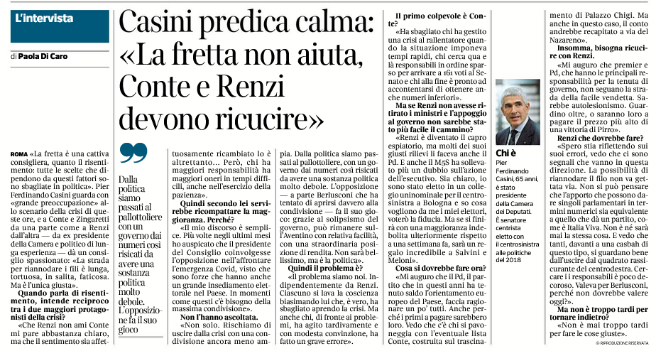 L’intervista di Paola Di Caro pubblicata sul Corriere della Sera